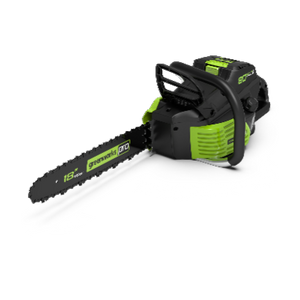 Greenworks battery-powered chainsaws deliver 20% more torque and quicker, more efficient cutting than a 40ml gas chainsaw equivalent. Greenworks chainsaws like the 60V 40cm Chainsaw provide constant power at 2 kW - giving you up to 110 cuts per 4Ah battery.