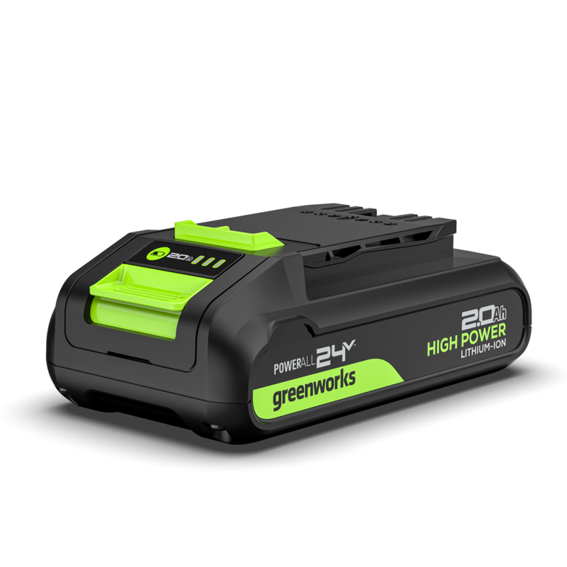 Est-ce la première fois que vous achetez des outils Greenworks ? Alors nous vous recommandons vivement d'acheter un kit de batterie ! Nos kits de batteries bon marché pour la série 24 V contiennent une ou deux batteries et un chargeur. Comme tous les outils de la série 24 V peuvent être alimentés par une seule batterie, vous n'en avez besoin que d'une seule, mais c'est toujours une bonne idée d'avoir une batterie supplémentaire à la maison au cas où vous auriez besoin d'utiliser deux outils de la série en même temps. Regardez de plus près notre sélection de batteries 24 V d'une capacité allant jusqu'à env. 86 wattheures.